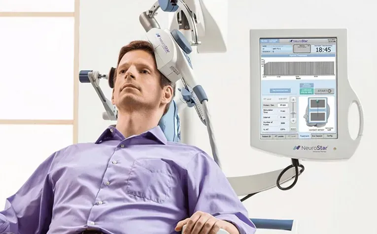 TMS is a drug-free treatment that targets the prefrontal cortex of the brain using focused magnetic fields. This area is often underactive in people with depression. By stimulating neural activity, TMS can help rebalance brain function and reduce depressive symptoms over time.